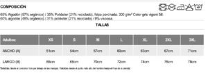 Su diseño de cuello redondo, junto con puños y cinturilla en canalé 2×1 con elastano, proporciona un ajuste confortable que mantiene la forma lavado tras lavado. Todas las costuras remalladas refuerzan la estructura de la prenda, aumentando su durabilidad y aportando un acabado más sólido.